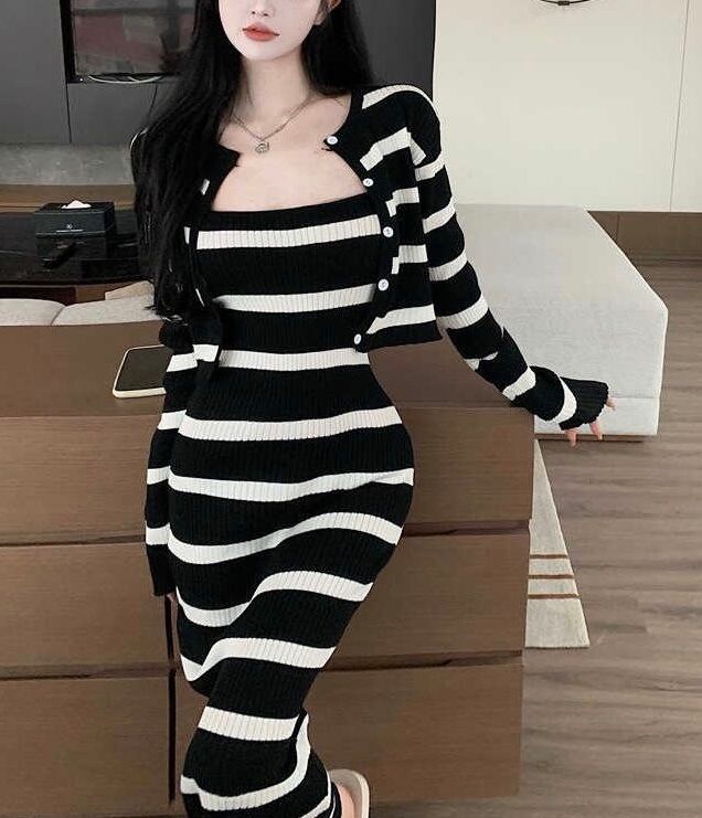 スリムボーダーカーディガンセット