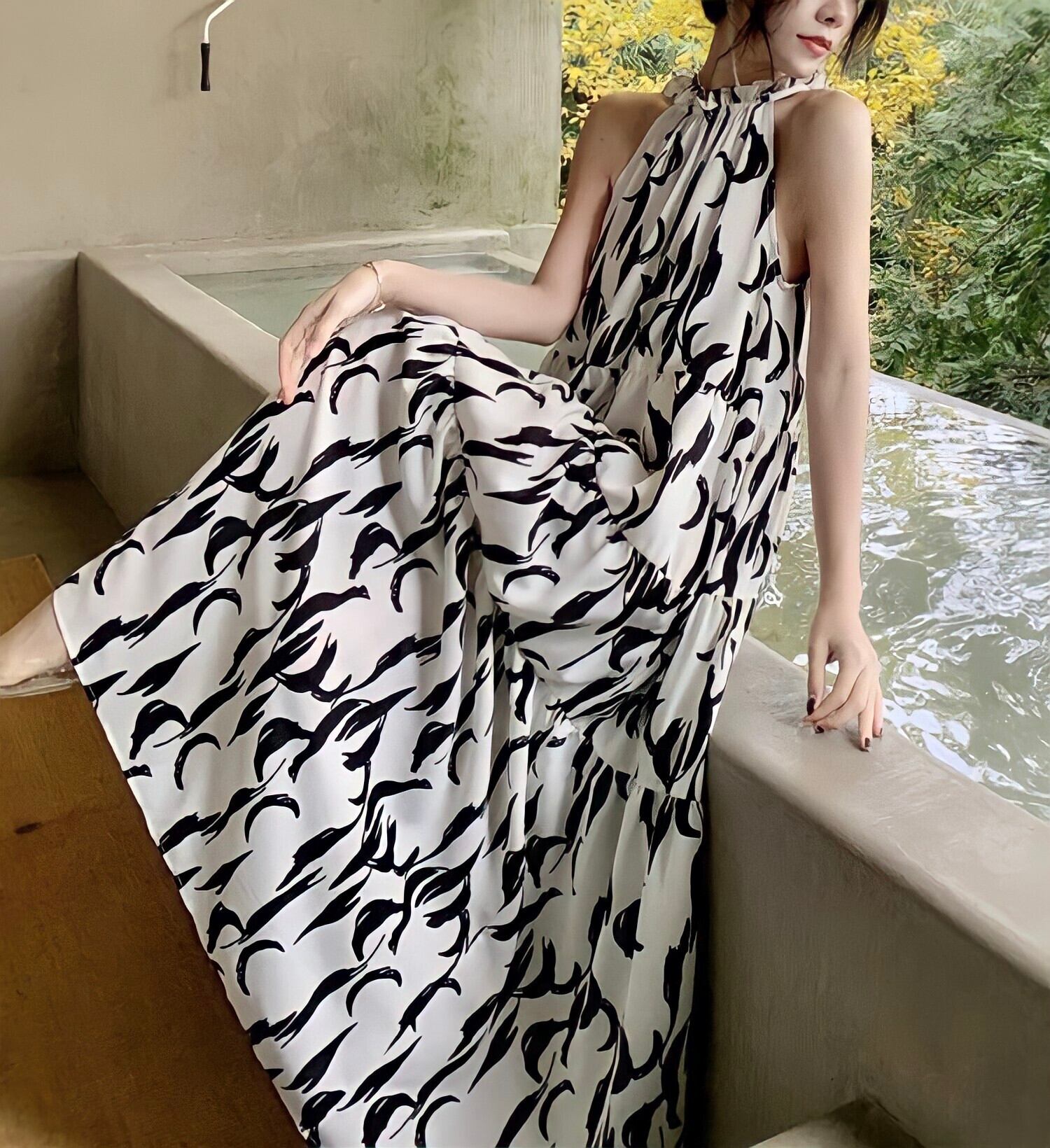 ホルターネックフレアワンピース