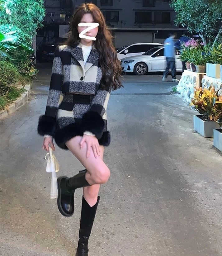 チェック柄ファーセットアップ